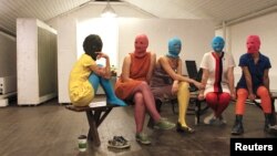Miembros del grupo femenino ruso punk Pussy Riot acusadas de pillaje y por haber actuado dentro de la principal catedral de Moscú. [Foto de Reuters].
