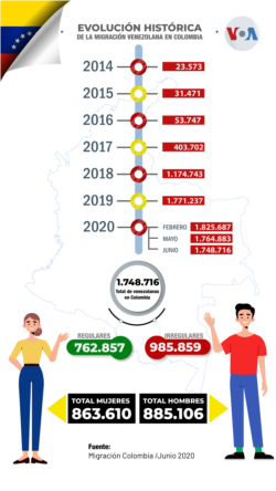 Colombia es el país de acogida con mayor cantidad de venezolanos, que llegó en junio de este año a 1.748.716, de acuerdo con números de Migración Colombia. La mayoría de ellos, casi un millón, se encuentra en situación irregular y sin documentación parar acceder fácilmente a servicios básicos de salud, educación, entre otros. Le sigue Perú con más de 800.000.