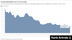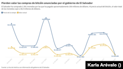 El Salvador ha sufrido pérdidas en el sube y baja del precio del bitcóin este año. Luego de la caída del valor de este 23 de noviembre, las 2.381 monedas que costaron 106 millones de dólares en su momento, ahora valen 39 millones de dólares, es decir, 67 millones menos de lo que se pagó por ellas.