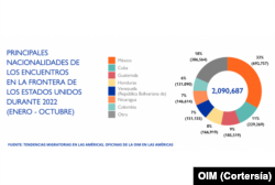 EEUU se mantuvo en 2022 como el principal país de destino, dijo a la VOA Liz Lizama, directora de comunicaciones de OIM. El país alberga a 51 millones de migrantes, la mayor cantidad en todo el mundo, seguido de Canadá con 8 millones y luego América del Sur.