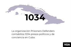 Por otro lado, la ONG Prisioners Defenders, con sede en Madrid, señala que a fecha de 30 de noviembre de 2022 había 1.034 prisioneros políticos en Cuba. Se trata de una cifra mayor que en 2021, cuando la ONG reportó que el mes de diciembre se inició con 805 prisioneros políticos. La cifra no pudo ser confirmada de forma independiente. El gobierno cubano dice que no tiene presos políticos, a los que cataloga de "mercenarios" al servicio de un gobierno extranjero.