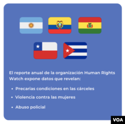 El reporte anual de HRW expone datos de 2021 que revelan situaciones reginonales como precarias condiciones en las cárceles, violencia contra las mujeres y abuso policial en países como Argentina, Ecuador, Bolivia, Chile y Cuba.