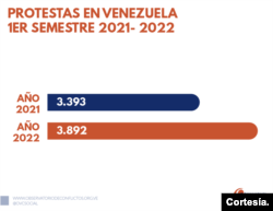 El Observatorio Venezolano de Conflictividad Social (OVCS) documentó 3.892 protestas durante el primer semestre de este año, “equivalente a un promedio de 22 diarias”, según el más reciente informe divulgado el martes.
