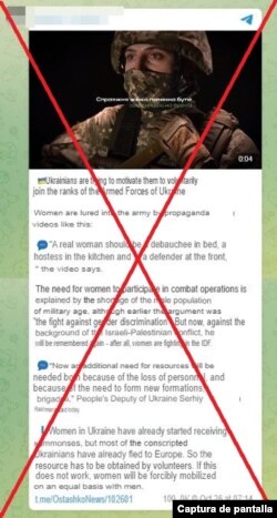 Pero las desinformaciones no se limitan a la difusión de propaganda. A principios de este año, comenzó a circular un video en el que soldados ucranianos conversan con un hombre antes de que llegue la policía y la persona sea detenida. Según los usuarios, esto mostraría que en Ucrania se está reclutando a la fuerza.