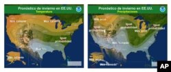 En cuanto al frío del invierno, el Centro pronosticó que la mayor parte del occidente y norte de Estados Unidos verá temperaturas más suaves que lo acostumbrado, aunque ocasionalmente masas de aire frío atravezarán todo el norte del país. Las planicies del Sur sufrirán más frío que de costumbre, dijeron los meteorólogos.
