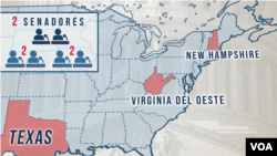 Algunos de los estados más extensos, como por ejemplo Texas, están representados por 2 senadores, igual que estados más pequeños como New Hampshire o Virginia del Oeste.