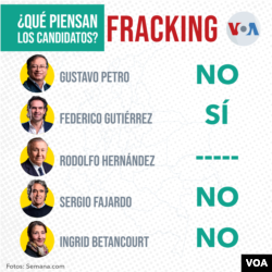 La más reciente encuesta de intención de voto, hecha por la firma YanHass para RCN Radio y TV y el diario La República, ubica a Petro con una popularidad del 40 %, seguido por Gutiérrez (21 %), Hernández (12 %), Fajardo (7 %) y Betancourt (1 %).