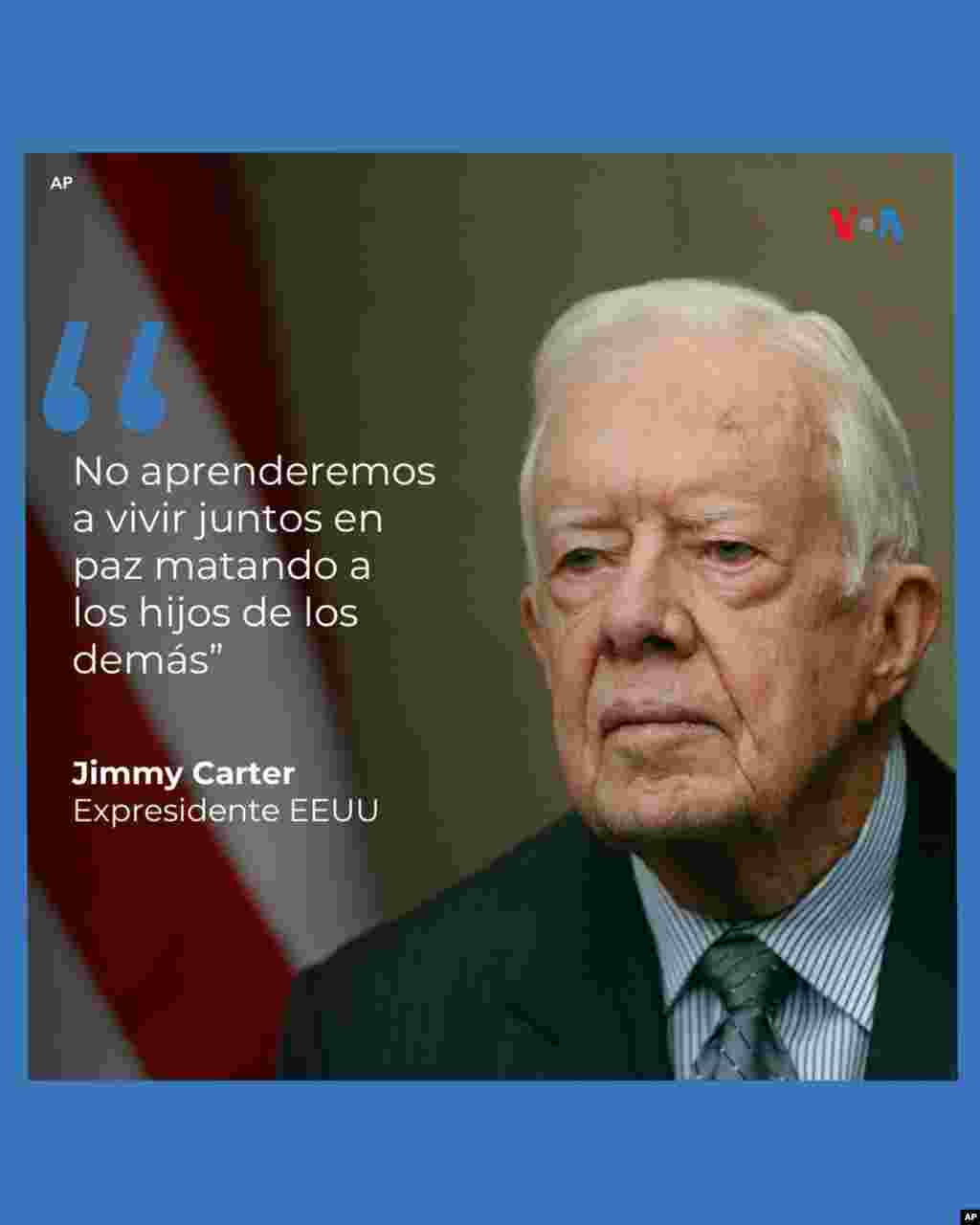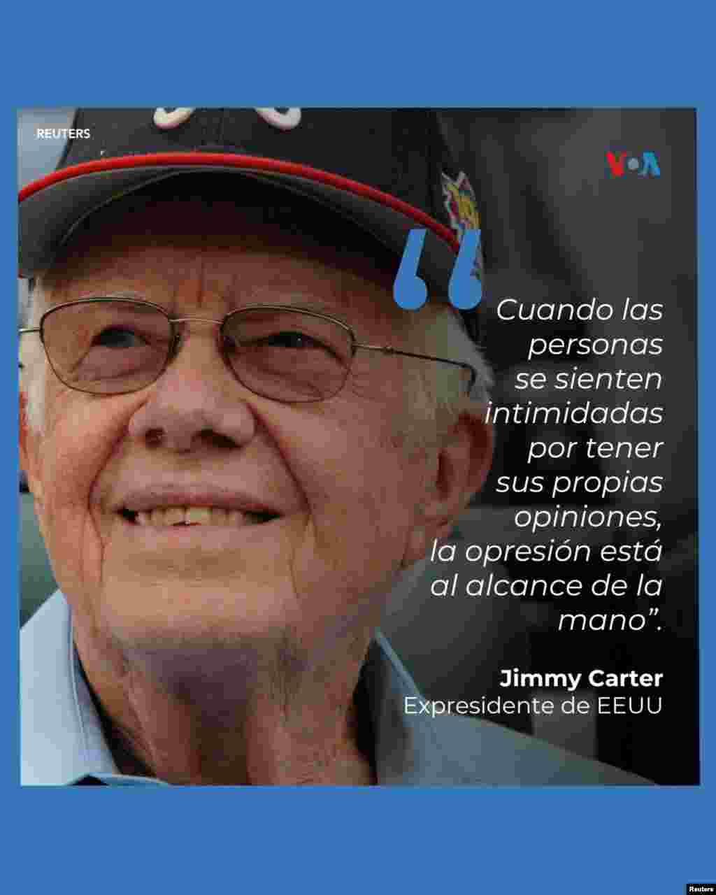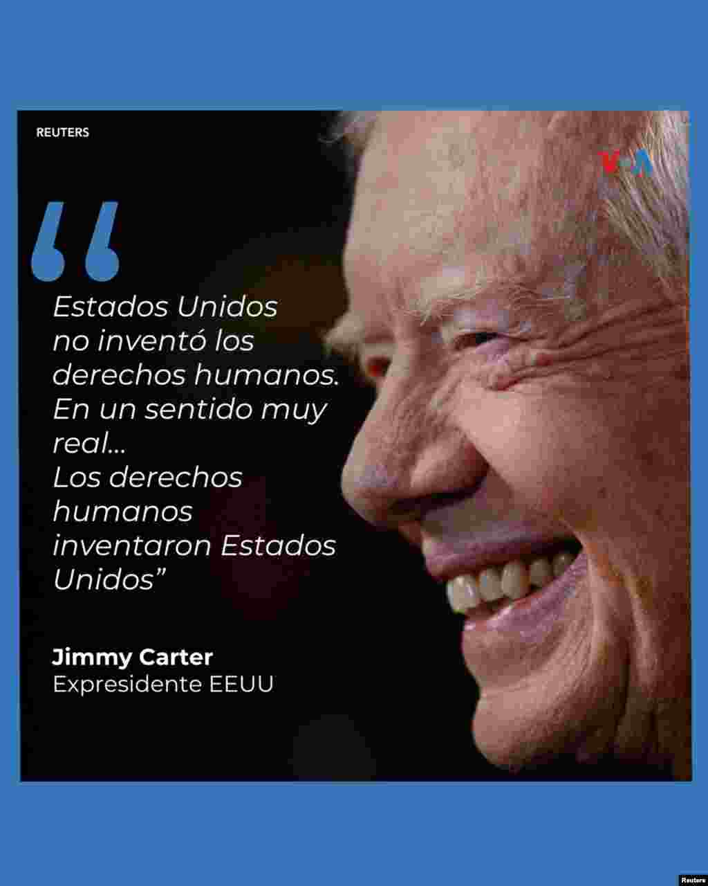 El expresidente de Estados Unidos James Earl "Jimmy" Carter, quien puso énfasis en los derechos humanos, los valores democráticos, la proliferación nuclear y la pobreza global, murió el domingo a los 100 años. Aquí recordamos citas pronunciadas en su carrera política.