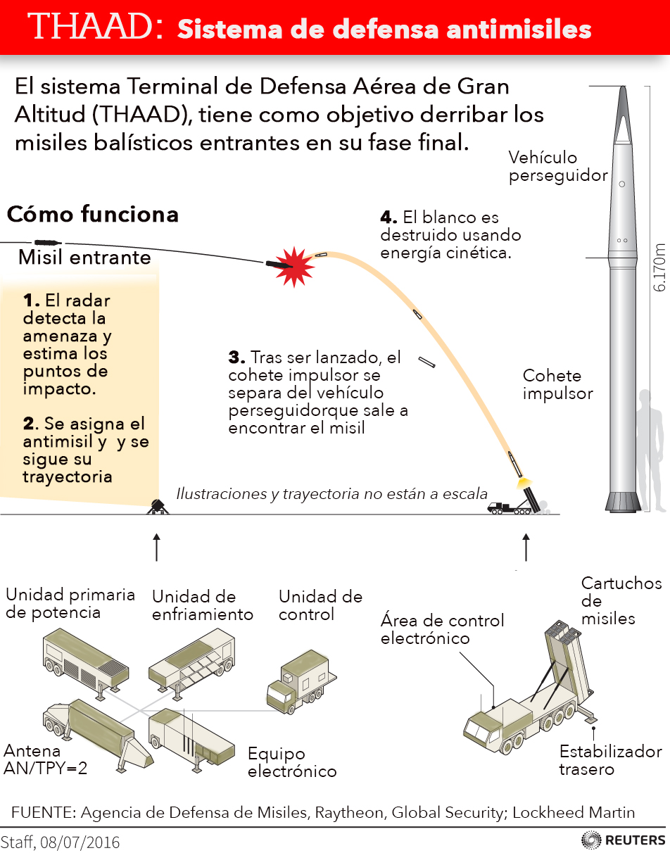 Por su parte, el departamento de Estado aclaró que "esto no es una amenaza para China o cualquier otro poder en la región, es un sistema defensivo y será implementadopor el comportamiento provocativo de Corea del Norte".