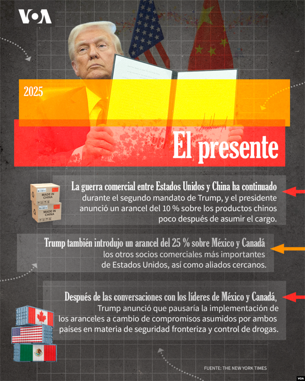 Estados Unidos ha protagonizado disputas comerciales con rivales y aliados. La más reciente, iniciada por Trump contra China, alcanzó a Canadá y México para forzar cambios en acuerdos. Estas medidas causaron fricciones diplomáticas y reavivaron el debate sobre el proteccionismo.