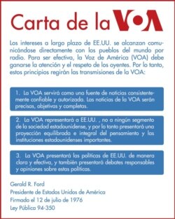 En 1976, el Congreso y funcionarios de la VOA determinaron que la agencia necesitaba un mandato editorial más claro para asegurar que mantuviera la credibilidad entre sus audiencias extranjeras. El Congreso elaboró un borrador del acta, la cual dice que la VOA debe publicar noticias exactas, producir contenido que represente a toda la sociedad estadounidense, y que ofrezca una explicación y discusiones claras sobre la política estadounidense.
