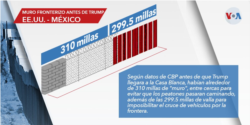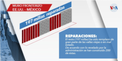 El Departamento de Seguridad Nacional informó el 19 de junio que se han construido “tres millas de un nuevo sistema de muro fronterizo en lugares donde no existían barreras anteriormente”. El resto (197 millas) ha sido remplazo de gran parte de las vallas viejas o en mal estado.
