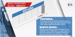 La principal promesa de campaña en 2016 del presidente Donald Trump aún esta a 250 millas de volverse una realidad. El ofrecimiento fue levantar un muro de hormigón de aproximadamente 450 millas antes de finalizar 2020, de acuerdo con lo revelado por la administración se han construido cerca de 200 millas.