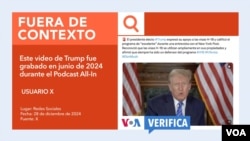 Por lo tanto, calificamos las publicaciones virales como fuera de contexto. El video compartido en X no corresponde a una grabación reciente de su entrevista con New York Post en diciembre del año pasado, sino a un fragmento del Podcast All-In, emitido en junio de 2024.