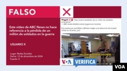 En los últimos días, usuarios han viralizado un fragmento de un supuesto reporte de ABC News. El clip, de 15 segundos, correspondería a un reporte sobre las bajas del Ejército ucraniano desde el inicio de la invasión rusa. Supuestamente, la señal habría informado que más de un millón de soldados ucranianos han fallecido y que “cientos de miles” han perdido extremidades.