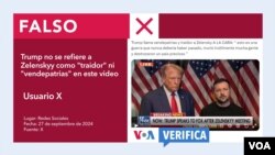 En redes, usuarios han viralizado una publicación en la que se asegura que Donald Trump llamó “vendepatria” y “traidor” al presidente de Ucrania, Volodymyr Zelenskyy. El post fue realizado a fines de septiembre, luego de que ambos políticos se reunieran en Nueva York. Su circulación cobra relevancia ya que la supuesta frase se viralizó en medio de la campaña presidencial que lo enfrenta contra Kamala Harris, la candidata demócrata.
