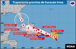 La previsión es que Irma se mueve más tarde cerca o sobre Islas Vírgenes y pase cerca o sobre Puerto Rico esta tarde o noche. Se espera que conserve fuerza de categoría 4 o 5 durante uno o dos días más.