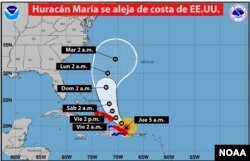El Centro Nacional de Huracanes de Estados Unidos dijo que se prevé que María gire hacia el océano y se aleje de la costa estadounidense.