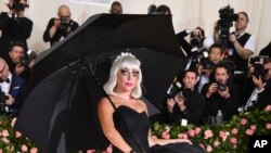 Brandon Maxwell, quien creó la revelación, ayudó a Gaga a navegar las escaleras del Museo Metropolitano de Arte mientras posaba con varios ayudantes que llevaban sombrillas grandes.