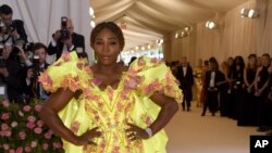 Gaga es un acto difícil de seguir, pero Serena Williams, una de las anfitrionas junto con Gaga, hizo todo lo posible con un vestido amarillo neón adornado con hojas, y calzando zapatillas Nike.