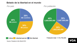 El grupo con base en Washington publicó este jueves su reporte anual en el que califica a 195 países y 14 territorios basados en sus derechos políticos y libertades civiles.