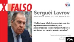 El canciller ruso se refería a las imágenes de cadáveres atados de manos y en las calles o de casas y edificios destruidos en esa localidad ucraniana que llegaron a las pantallas de todo el mundo. Sin embargo, aparte de que imágenes periodísticas mostraron los cuerpos sin vida, investigaciones posteriores han revelado que ya eran visibles durante la presencia rusa.