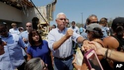 Mike Pence, que llegó acompañado de su esposa Karen y secretarios del gabinete, se reunió con un grupo de damnificados en una iglesia destruida en parte por la tormenta.