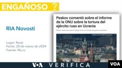 El 28 de marzo, RIA Novosti publicó un artículo titulado "Peskov comentó el informe de la ONU sobre la tortura de militares rusos en Ucrania", donde citó al portavoz del Kremlin, Dmitry Peskov.