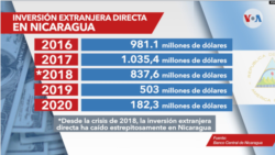Después de la crisis de 2018, la inversión extranjera directa (IED) en Nicaragua cayó a niveles históricos. Datos del Banco Central revelan que hubo una caída de hasta un 63,75% en 2020, en comparación con el año anterior.
