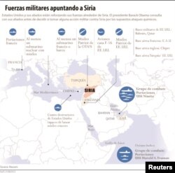 Pero a pesar de que los recursos militares están siendo colocados en posición, Estados Unidos y sus aliados se enfrentan a crecientes cuestionamiento, tanto a nivel doméstico como en el extranjero a un ataque contra Siria en respuesta al presunto uso de armas químicas contra la población civil.