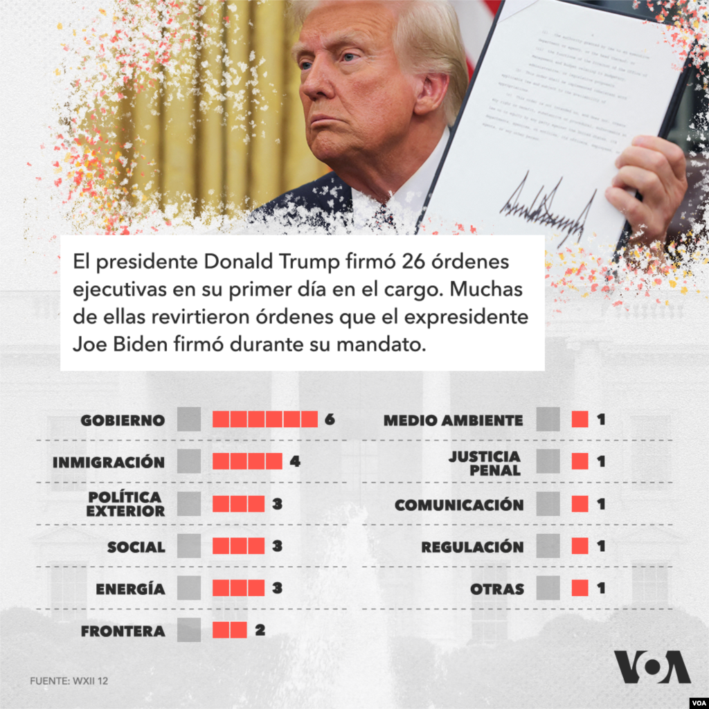 ✍🏻 El presidente de Estados Unidos, Donald Trump, firmó el lunes sus primeras órdenes ejecutivas. Muchas de ellas revirtieron algunas disposiciones que habían sido aprobadas por el expresidente Joe Biden durante su mandato. ¿Cuáles son? Esto es lo que sabemos al respecto:
