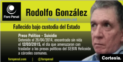 El 12 de marzo de 2015, Rodolfo Pedro González murió en la celda que ocupaba en “La Tumba”, como se conoce a una de las sedes del Servicio Bolivariano de Inteligencia Nacional (SEBIN) en Caracas.