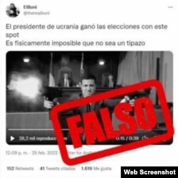 Otro ejemplo de esta narrativa circuló con fuerza al principio de la guerra, cuando se difundió el supuesto spot de campaña con el que Zelenskyy ganó las elecciones.