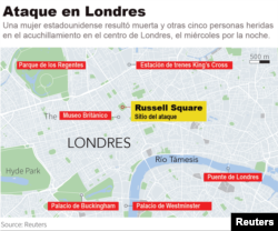 Una mujer asesinada a cuchilladas, en un ataque en las calles de Londres, era una estadounidense de unos 60 años, según informó, este jueves, Scotland Yard.