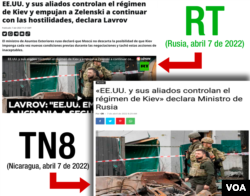 En la televisión de Rusia la guerra en Ucrania no existe y en la de Nicaragua tampoco. Lo que existe es una “operación pacificadora”. Los ataques de las fuerzas rusas a civiles son un “teatro de periodistas y medios de Ucrania”. Lo que quiere el presidente ruso, Vladimir Putin, es “liberar a la gente de los sufrimientos y el genocidio” en Ucrania. Esta es la historia de la guerra que los canales de televisión en Nicaragua están contando. Replican sin modificar una sola palabra los contenidos del canal oficial de televisión de Rusia en español, Actualidad RT.