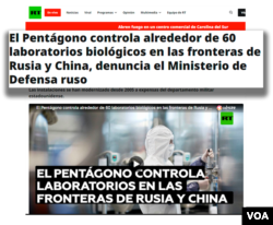 En la misma emisión del 6 de abril, el periodista del Noticiero 6 leyó otro contenido de RT sobre la acusación sin pruebas del Kremlin, asegurando que Estados Unidos tiene laboratorios biológicos en las fronteras de Rusia y China. Sobre dicha afirmación, las Naciones Unidas ha dicho con anterioridad que “no hay señales de laboratorios de armas biológicas en Ucrania”, sin embargo, al aire, el periodista solo repitió la posición del Ministerio de Defensa de Rusia.
