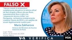Zakharova afirmó que Corea del Sur acusó erróneamente a Rusia de violar el embargo de armas de la ONU sobre Corea del Norte.
