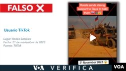 Sin embargo, siguen difundiéndose videos en TikTok que implican falsamente que Rusia está enviando tropas a Gaza en apoyo de los palestinos.