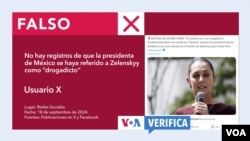 El pasado martes 1 de octubre, Claudia Sheinbaum asumió la presidencia de México tras ganar las elecciones del pasado 2 de junio. A la toma de protesta asistieron 16 jefes de Estado, representantes de 23 organismos internacionales y de 105 países. En ese contexto, usuarios han viralizado que, supuestamente, Sheinbaum calificó al presidente de Ucrania, Volodymyr Zelenskyy, como un “drogadicto”.