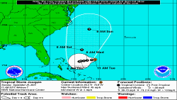 Actualmente la tormenta avanza a 65 kph cuando se ubicaba a 620 km al noreste de las Bahamas, avanzando lentamente hacia el oeste pero luego virará hacia el norte,lo que hace prever que impacte la costa este del país.
