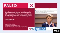Por otro lado, una desinformación similar circuló en junio de 2022. En esa ocasión, se aseguró que Von der Leyen afirmó que la UE debe seguir comprando el petróleo ruso para “salvar a Europa de Putin”, lo cual fue desmentido por EFE Verifica.
