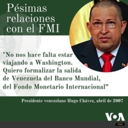 Chávez, en 2007, anunció que firmaría el retiro de Venezuela como país miembro del FMI. Maduro, por su parte, llamó en 2018 al organismo “sicario del mundo” y lo culpó de la muerte por “hambre” de millones de personas.