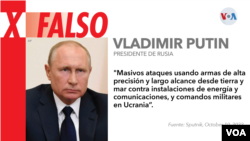 "Esta mañana, por iniciativa del Ministerio de Defensa y siguiendo un plan (formulado por) el Estado Mayor, se ejecutaron masivos ataques usando armas de alta precisión y largo alcance desde tierra y mar contra instalaciones de energía y comunicaciones, y comandos militares en Ucrania”, dijo Putin.