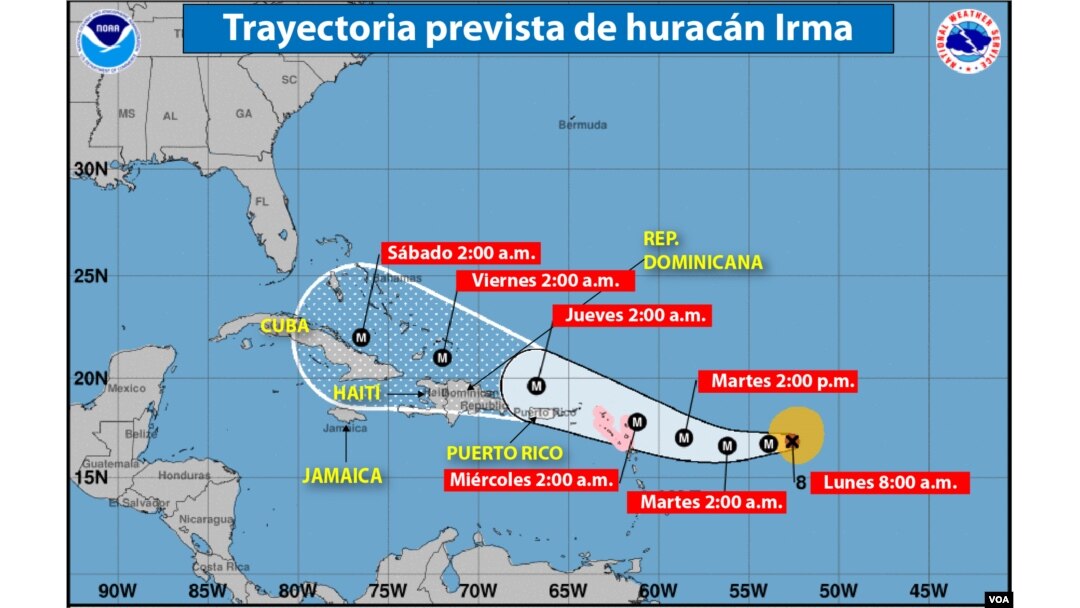 El servicio meteorológico de Antigua y Barbuda emitió la tarde del domingo una alerta de huracán para el país, así como como Anguila, Monserrat, San Cristóbal y Nieves, Saint Martin, Guadalupe y las islas Vírgenes Británicas.